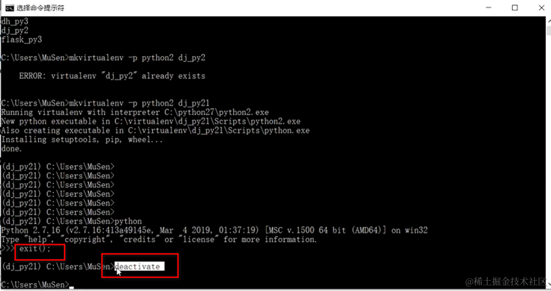 先输入exit();再输入deactivate