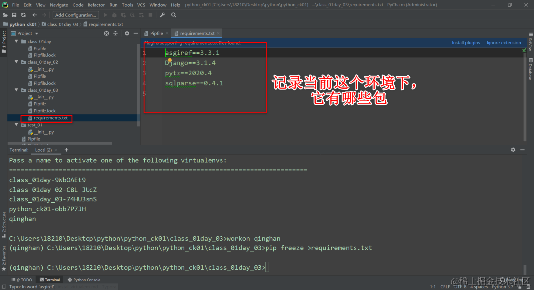 3.导出虚拟环境为requirements.txt文件