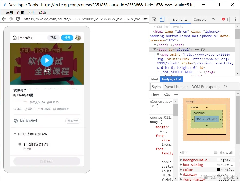 这个步骤之后进入到了全程班的页面,进入全程班的页面也是需要时间的。Web View 这个元素当中放的才是 Html 页面,是不是等到 Html 页面加载出来之后再去获取所有的相关内容这样比较好。