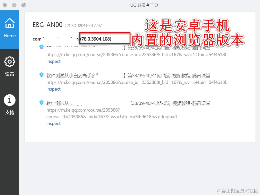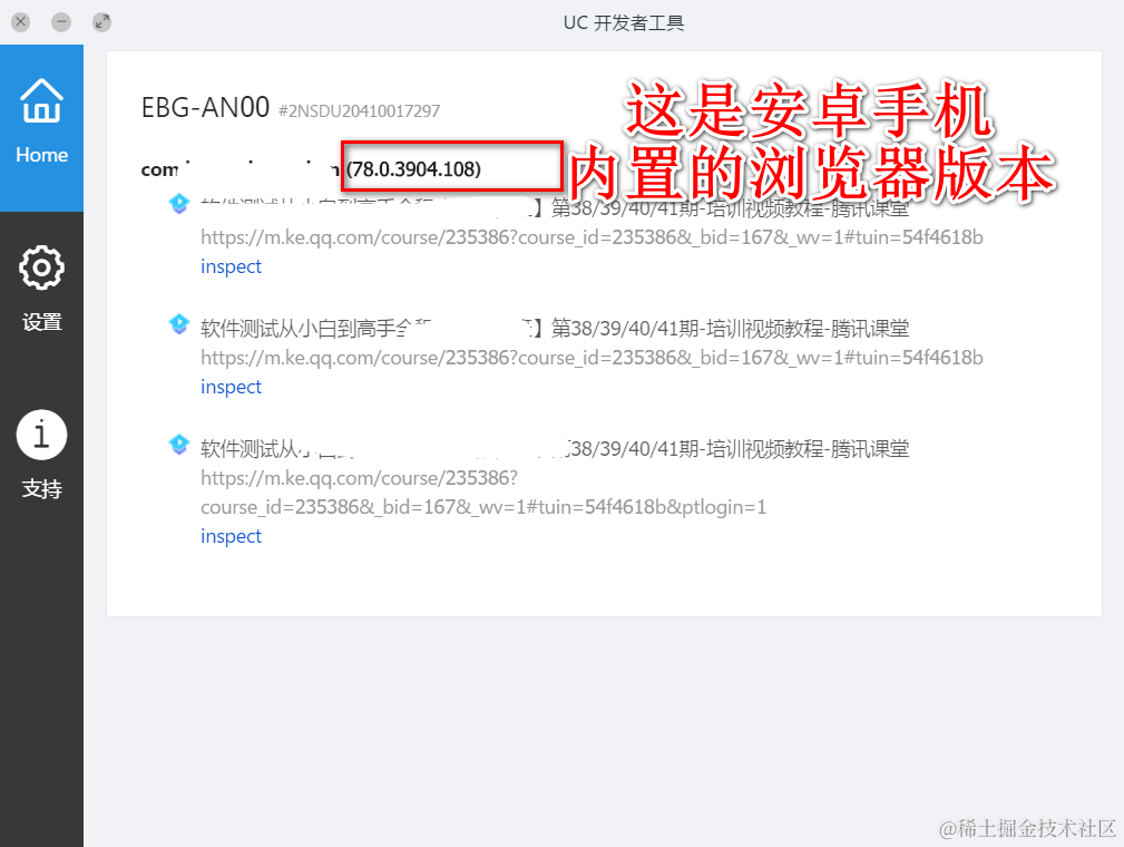 这个是安卓手机内置的 Web View 版本,也就是安卓手机内置的浏览器版本。Web 自动化要下载浏览器驱动,那我们这个地方并没有操作的是浏览器,操作的是网页。