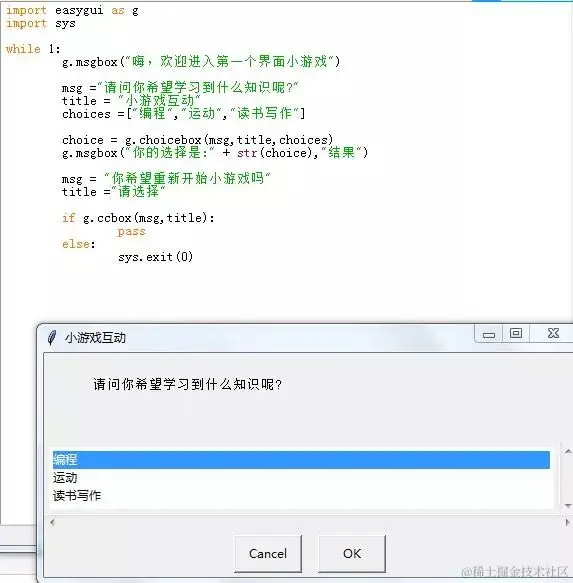 3,使用类似下边的 import 语句,保持 EasyGUI 的命名空间,同时减少你的打字数量。