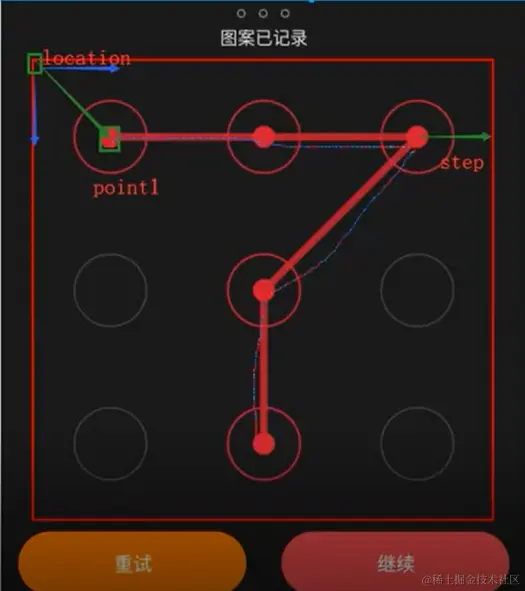 TouchAction(driver).press(x=point1[0],y=point1[1]).wait(100).\