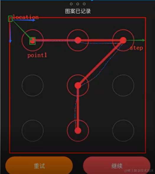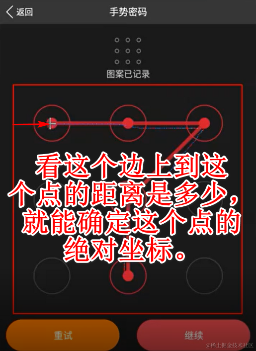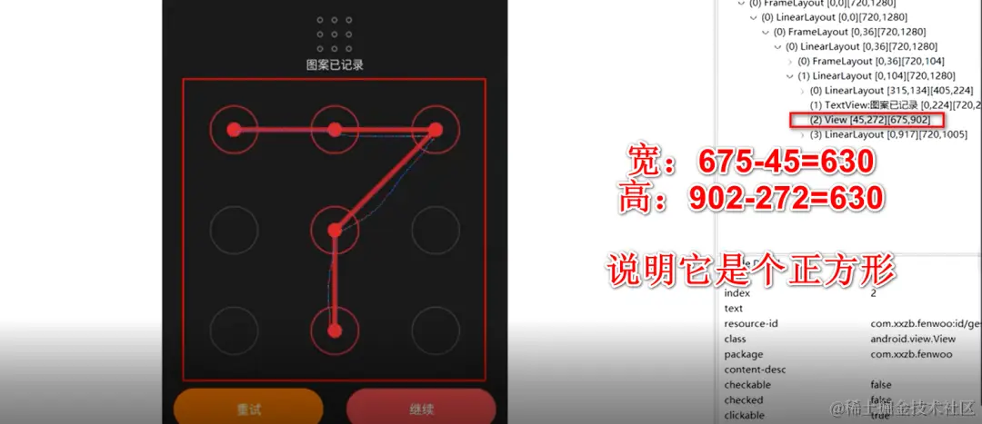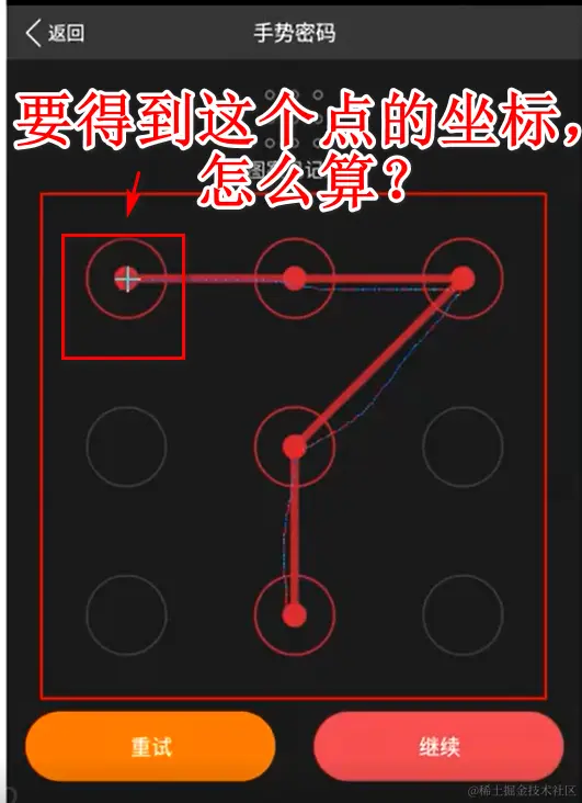 把它分成 6 份。第一个点的坐标:能够得到 view 的起点坐标是 45,272。有专门的函数可以获取元素的大小以及它的起点坐标。