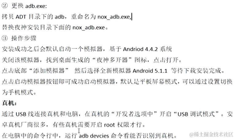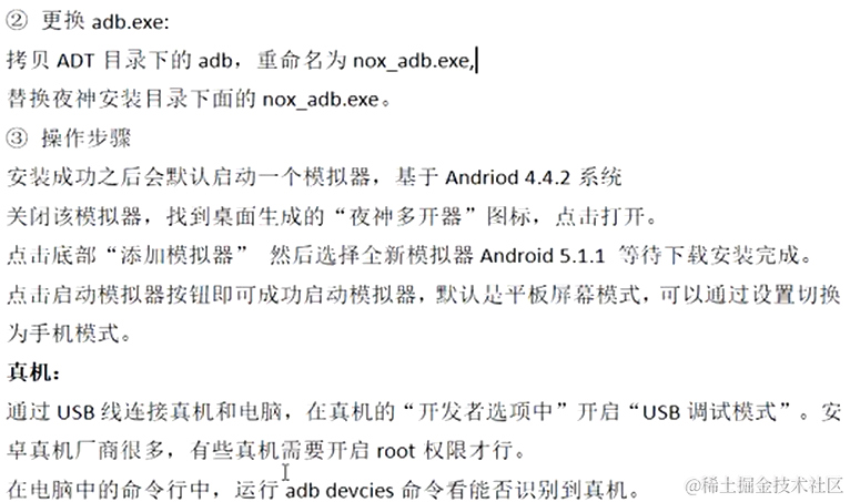 1.将手机用数据线连接电脑,打开手机开发者模式下的调试模式,然后在电脑上 cmd 窗口输入 adb devices ,能够输出设备的信息即可。