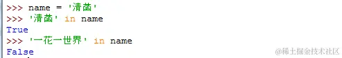 in用来检查一个值是否在序列中,如果在序列中,返回True,否则返回False。