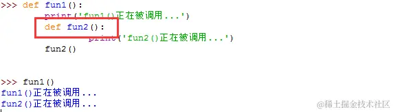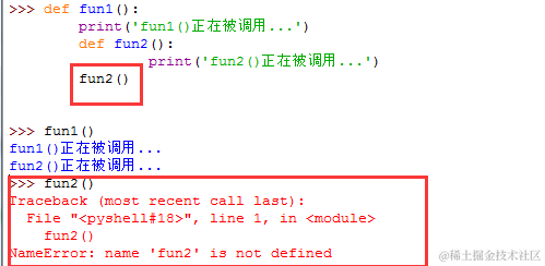 在fun1()这个函数体里面可以随意调用fun2(),在fun1()函数体外,fun2()就不能被调用了。