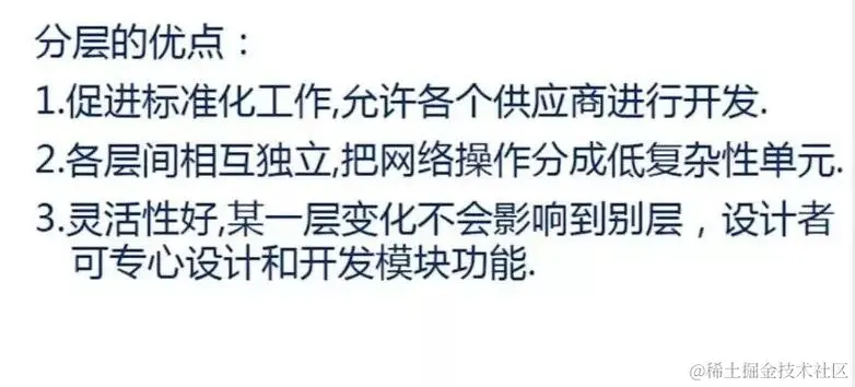 三点综合,网络分层像“快递”。网络分两个系统,端系统和中间系统,端系统相当于快递里的卖家和买家,中间系统是帮着端系统去调解,快递发件的快递公司,发件的是网络平台。分工合作,标准化,任何一个环节有问题,换任何一个环节即可。