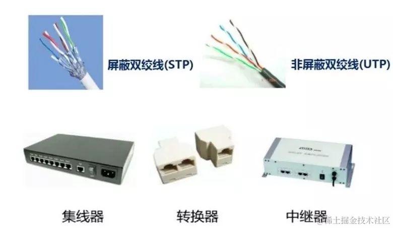 物理层除了线以外也有相应的一些设备。包括屏蔽双绞线和非屏蔽双绞线,集线器,转换器(也就是家里的“猫”),中继器(还原/放大信号)。