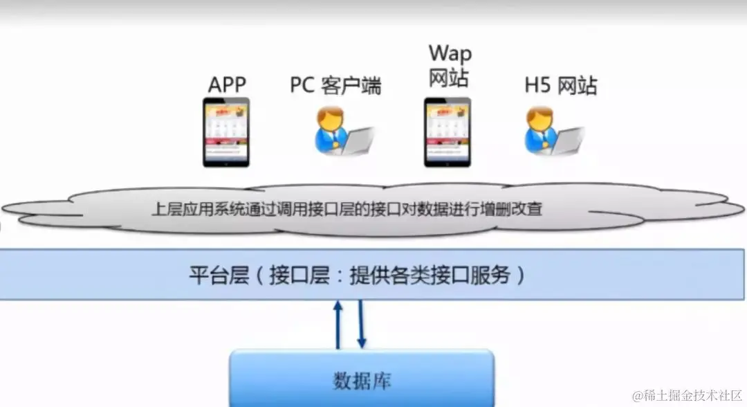 接口层(平台层)在接口架构中很常见。它是没有界面的,让人感觉神秘,哈哈 。不同的接口可以把数据库中存储的数据按照业务逻辑,或者提供数据的要求封装在不同接口中对外提供不同的数据。