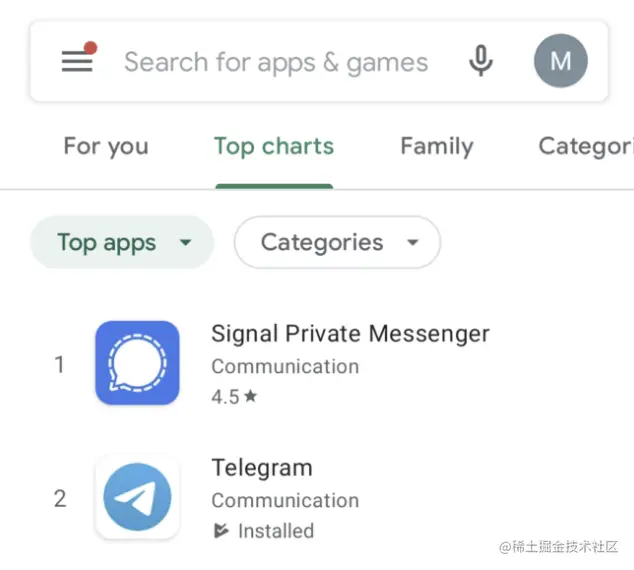 之后短短的一天时间内,这个名为 Signal 的 IM 通讯软件便登上了 AppStore 以及 Google Play 下载排行榜的 No.1,全球累计下载量约为750万。