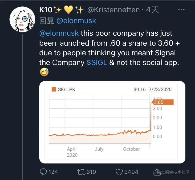 更夸张的是,一家和这个 App 同名但是毫无关联的公司,也因为老马的这一条推特,股票大涨 438%,这乌龙闹的...