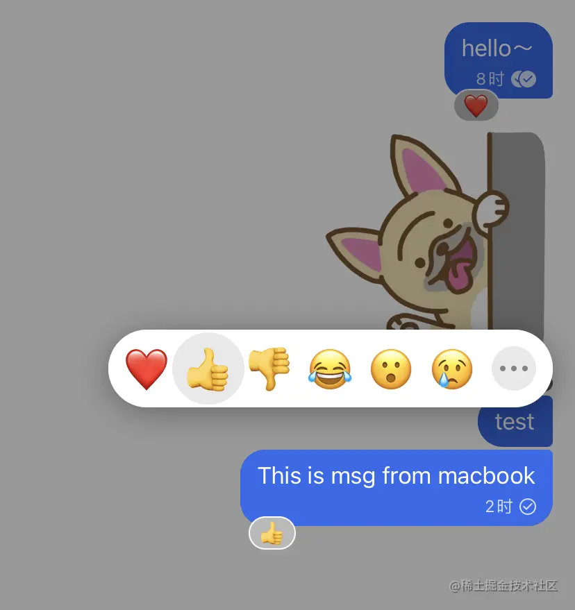 发送的消息会显示已读状态,对话的信息可以长按回复表情,这点国内的飞书、钉钉也很早就有的功能。