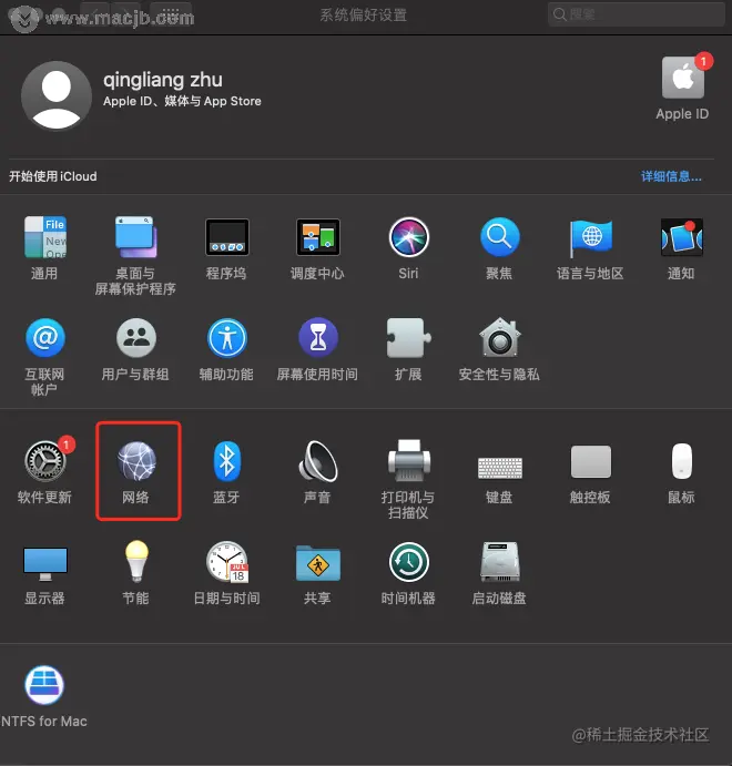 2.在“系统偏好设置”窗口中单击“网络”。