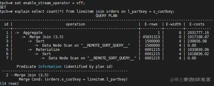 因为lineitem表关联的键l_partkey不是lineitem的分布键,需要添加Stream算子,但Stream功能被禁,于是只能生成不下推计划。