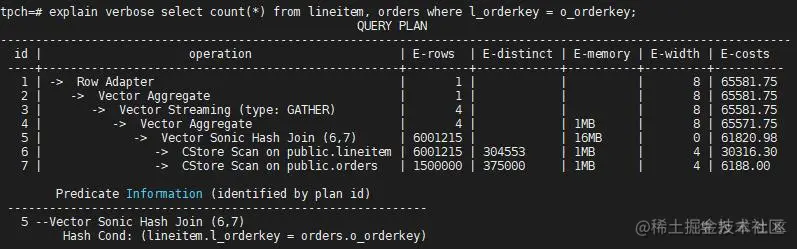 在SMP开启的情况下,当并行度(dop)大于1时,一般还会有Local Redistribute、Split Redistribute、Local Broadcast和Split Broadcast;当倾斜优化开启时,还有PART REDISTRIBUTE PART ROUNDROBIN、PART_REDISTRIBUTE_PART_BROADCAST、PART_REDISTERIBUTE_PART_LOCAL等等,这些也是Stream算子,主要就是重分布、广播、RoundRobin的一些扩展形式,这里我们不一一介绍了,感兴趣的读者可以参考GaussDB DWS 产品手册。