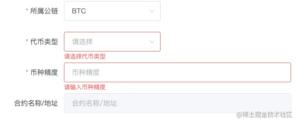 其它的规则我都统一写在了数组里,只有需要根据不同条件(当选择btc时不需要输入,当选择lcn时必填)进行校验的写在了行内