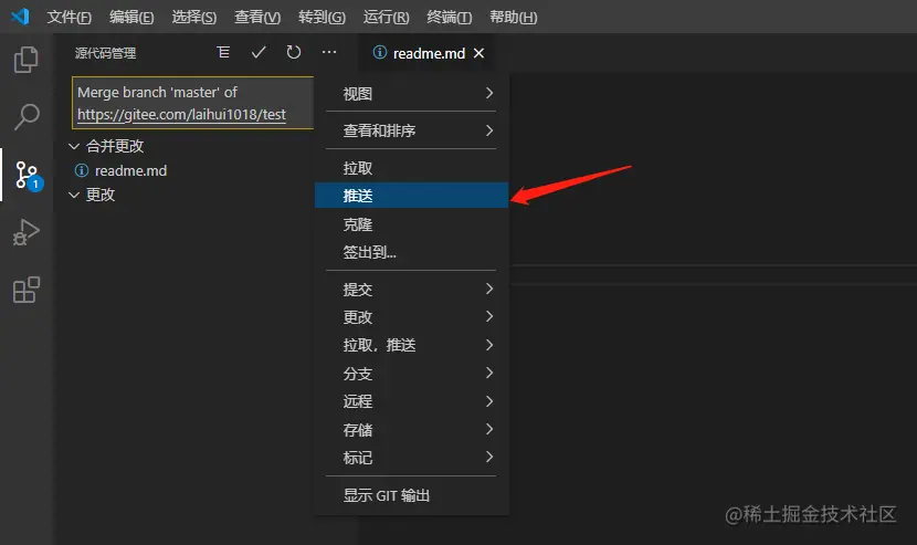 - 没有冲突的话,合并完后,直接推送到远程即可