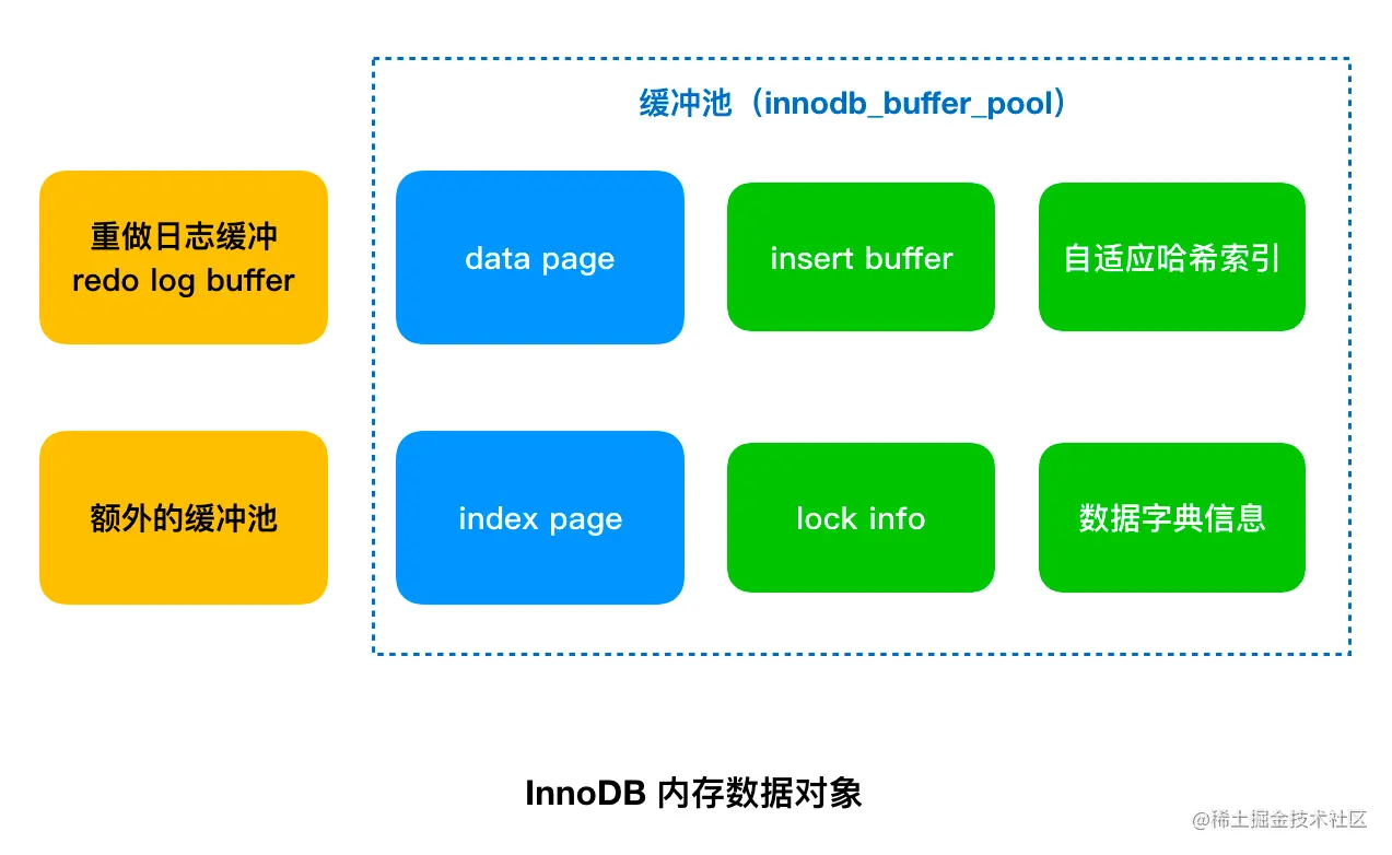 - 缓冲池很大程度减少了磁盘 I/O 带来的开销,通过将操作的数据行所在的数据页加载到缓冲池可以提高 SQL 的执行速度。