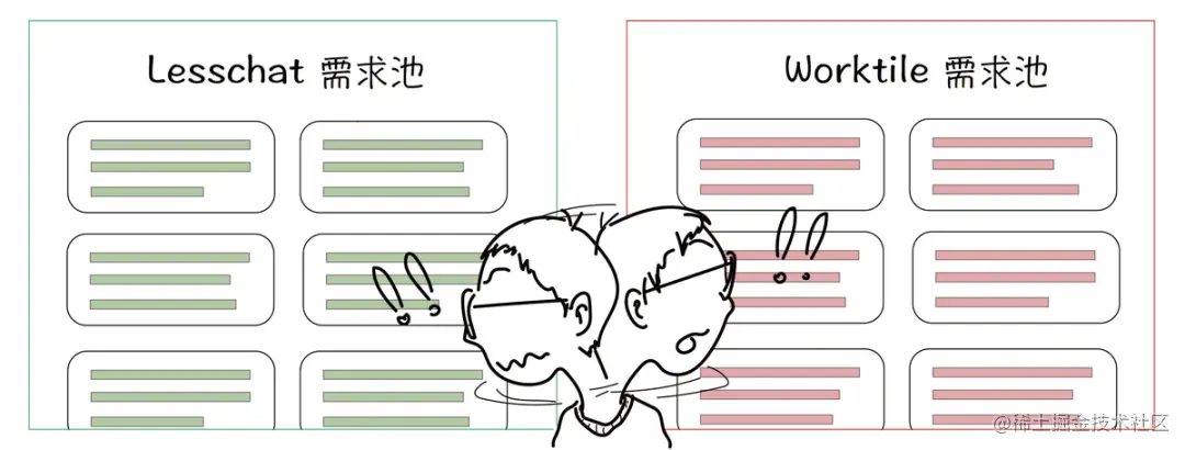但当我们对外推出了第二款产品Lesschat(后来Worktile企业版/协作版,绿色Logo)以后,Worktile(这里指Worktile基础版,红色Logo)需要持续更新,Lesschat也需要持续更新,我们该如何处理工作的优先级呢?