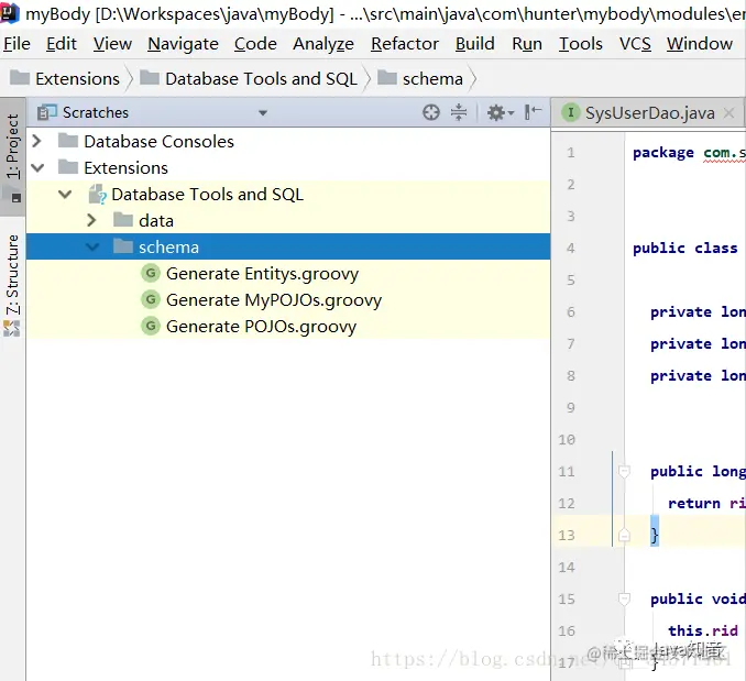 进来只有Generate POJOs.groovy,右键新建另外一个比如我的叫做:Generate MyPOJOs.groovy,里面内容如下: