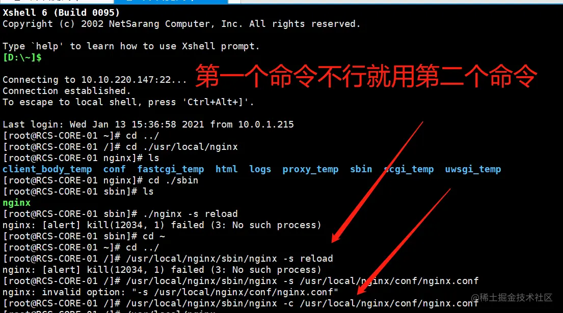 先进入nginx文件夹cd /usr/local/nginx/sbin 然后执行./nginx -t
