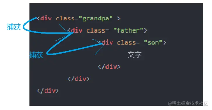 事件捕获规定: 从grandpa => father => son 依次出发 从图片解释如下图