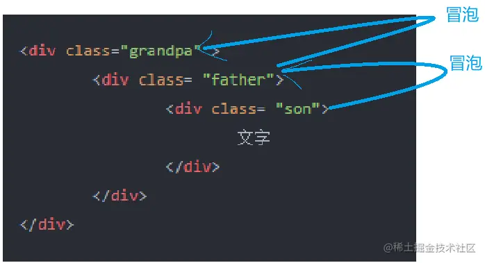 事件冒泡规定: 从son => father => grandpa 依次触发事件 从图片解释如下图