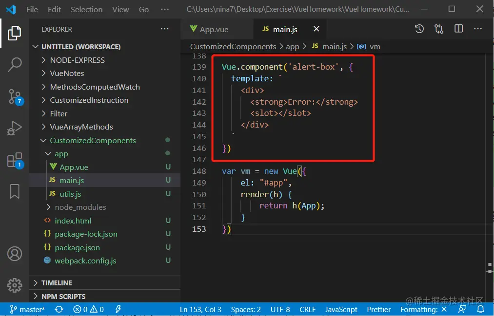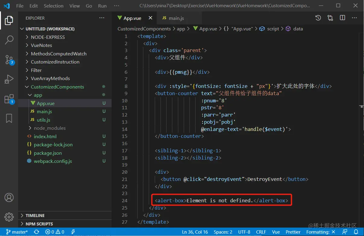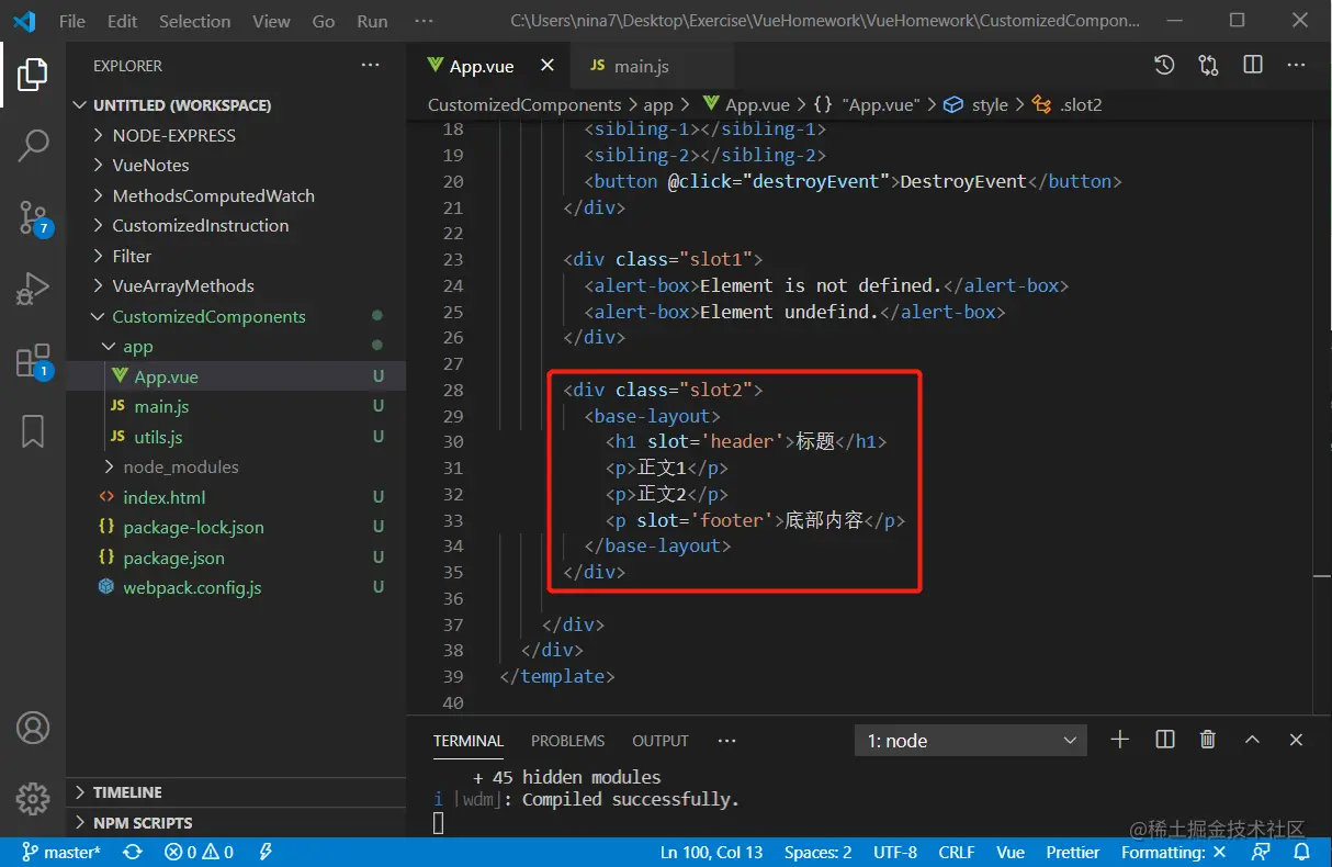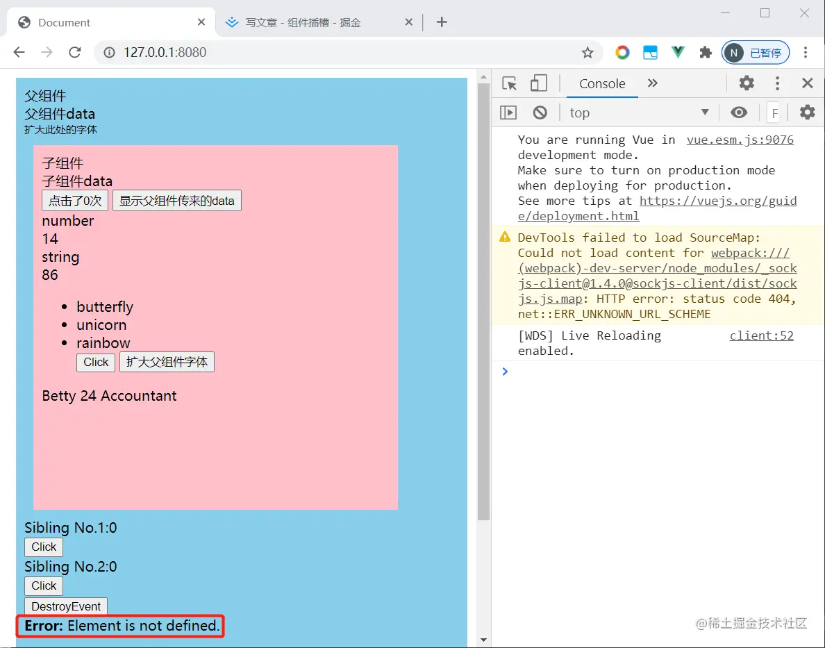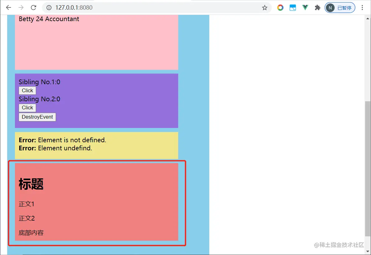 按照上面的代码,错误提示Error之后的信息是可变的,通过插槽的方式处理,相当于预留了一个填充信息的位置,然后我们要从父组件将内容传递给插槽来填充这个信息。
