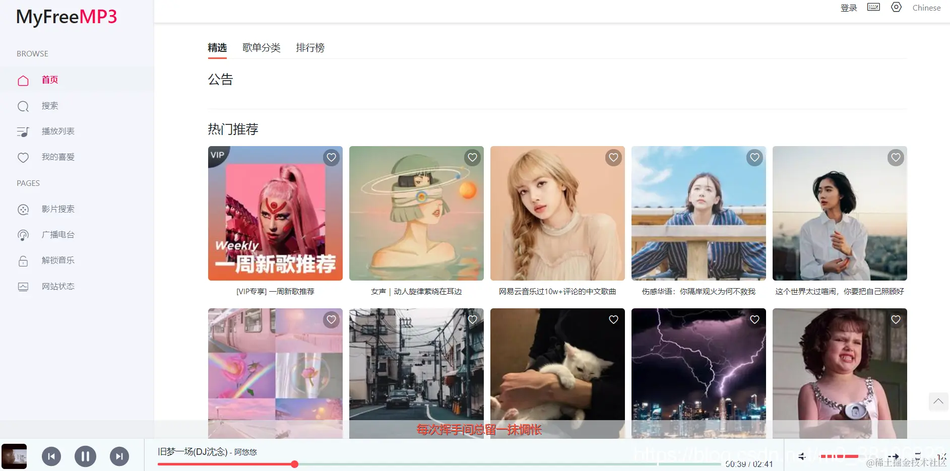 现在QQ音乐、酷我音乐等各类平台听歌、下载都是收费的,例如我喜爱的周杰伦,很多歌曲都无法免费听了,MyFreeMP3网站支持所有音乐免费听、甚至可以直接免费下载。