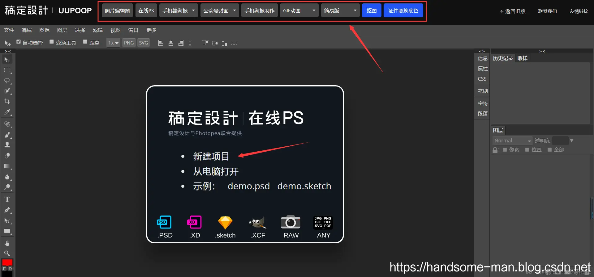 稿定设计是一款多场景商业视觉在线设计平台,提供操作简单、功能强大的在线服务,抠图简单高效,支持在线PS、人工智能抠图和证件换背景等操作。