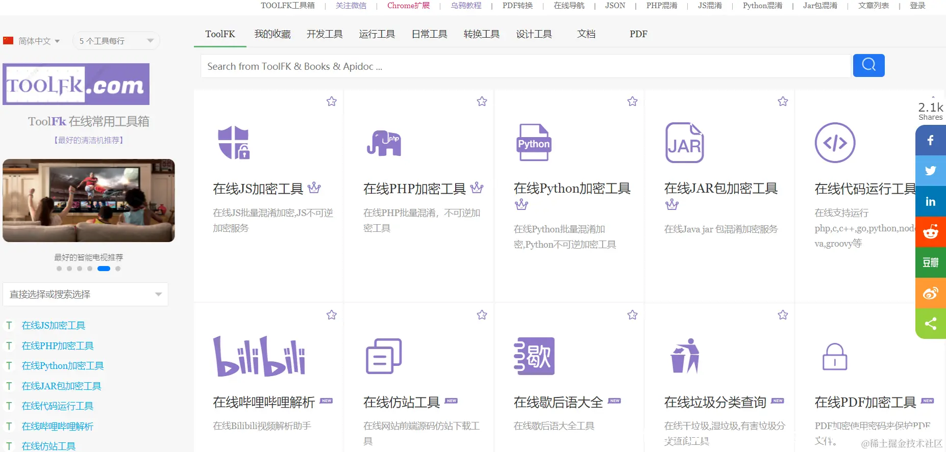 TOOLFK 是一个面对程序员的在线工具箱网站。包含 100 多种实用的工具,包含:程序在线运行、在线制作思维导图、在线网络爬虫、语音合成、PDF/PPT/Excel 文档转换加密工具、MarkDown 格式转换等。
