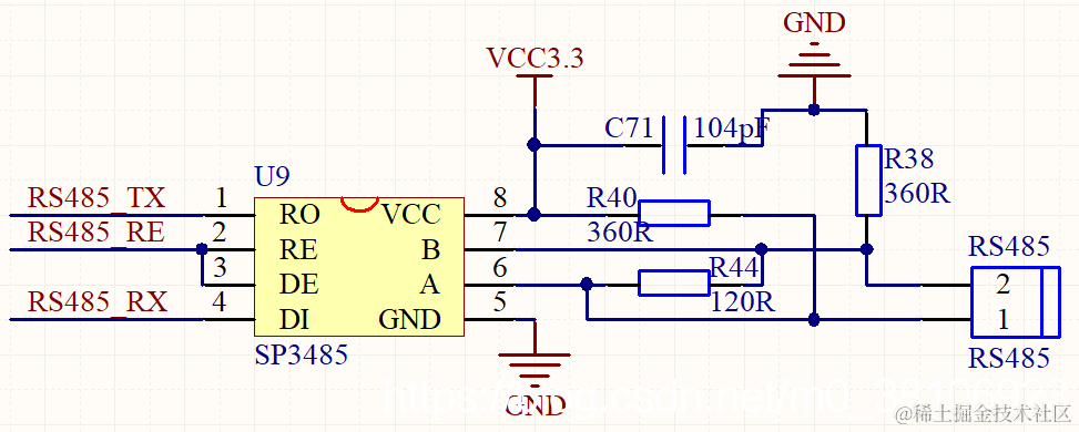 由于RS485的工作电压VCC为5V,极限电压为12V,因此TVS的工作电压Vrwm≥5V,钳位电压≤12V;可以预选SMBJ5.0A。Vrwm=5V,Vc=9.2V。