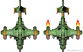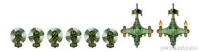 构造函数中image是飞机图片,(x, y)是飞机位置坐标,而最后一个参数n是本飞机图是几帧动画,例如己方飞机是6帧动画,敌机是2帧动画,效果如下所示: