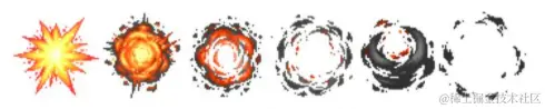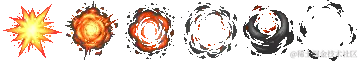 爆炸动画被叫简单,只需原地绘制爆炸的6帧就可以,效果如下所示: