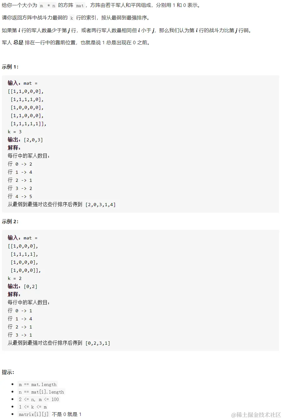 int* kWeakestRows(int** mat, int matSize, int* matColSize, int k, int* returnSize){