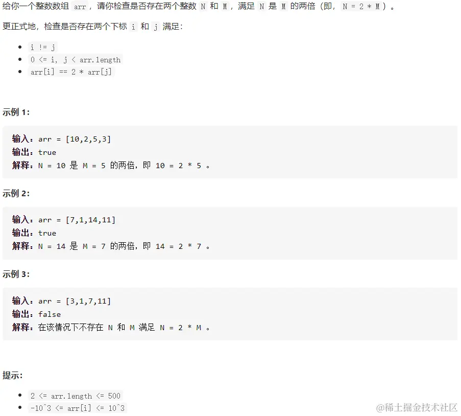 暴力破解。遍历数组,找出数组中的偶数,只有偶数才能是其它数的两倍,然后在这个条件下,给这个偶数除以2,以temp变量保存,然后再次遍历数组,找到是否数组中有值与temp相等。