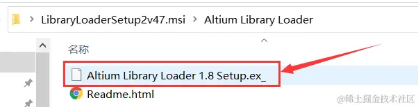 下载完成后,进入文件:Altium Library Loader,将Altium Library Loader 1.8 Setup.ex_修改为Altium Library Loader 1.8 Setup.exe,即可点击安装Altium Library Loader软件(安装过程较为简单,此处省略),如下图所示: