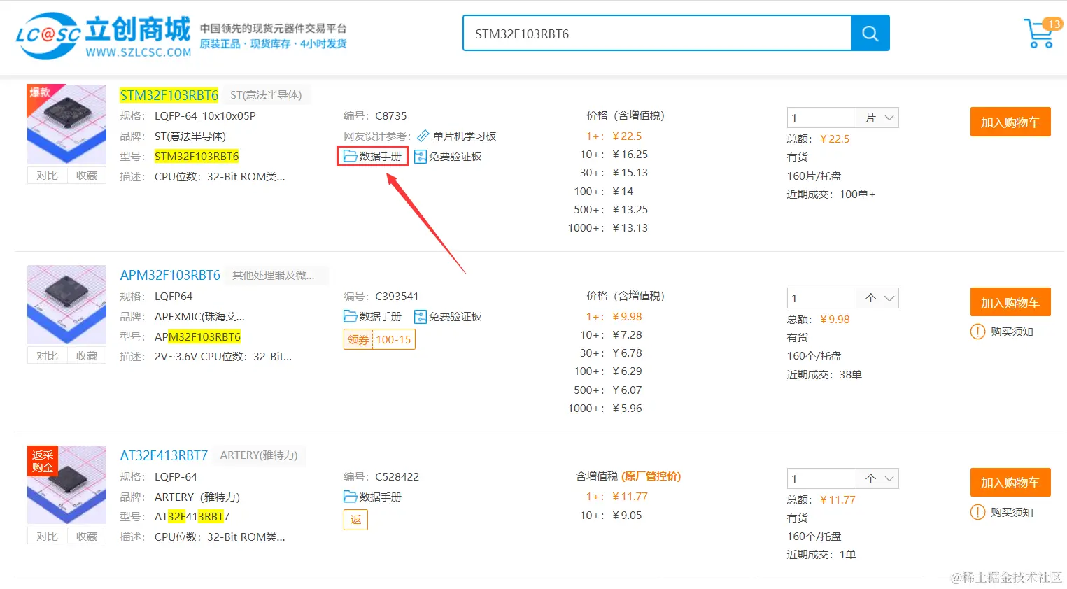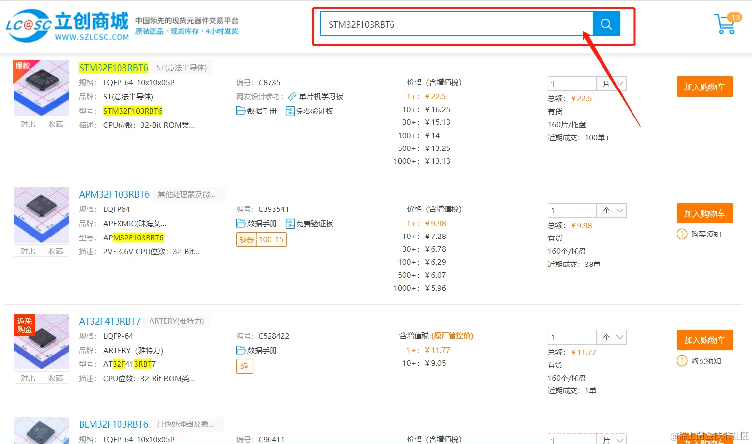 第1步:在立创商城查找该元器件,可以看到不同厂商和价格的该类元器件,如下图所示: