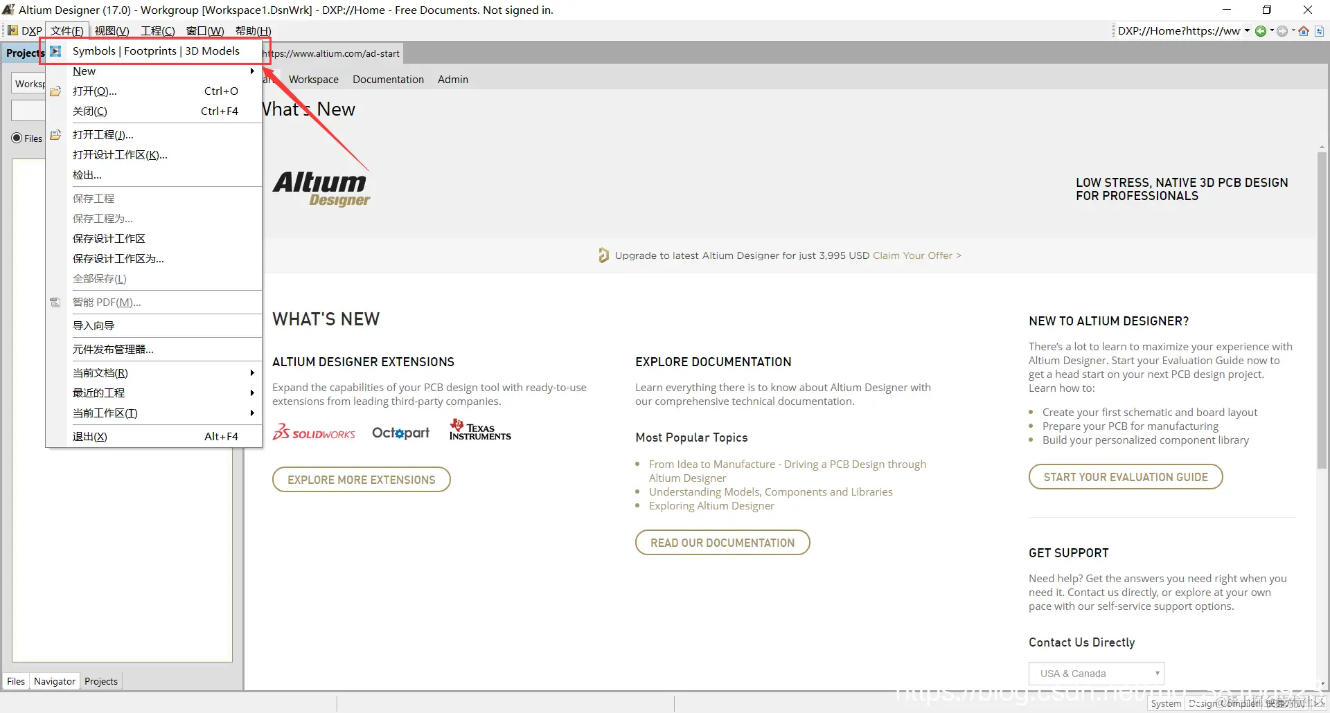 打开Altium Designer软件,在 【文件】 路径下即可看到Altium Library Loader插件,如下图所示:
