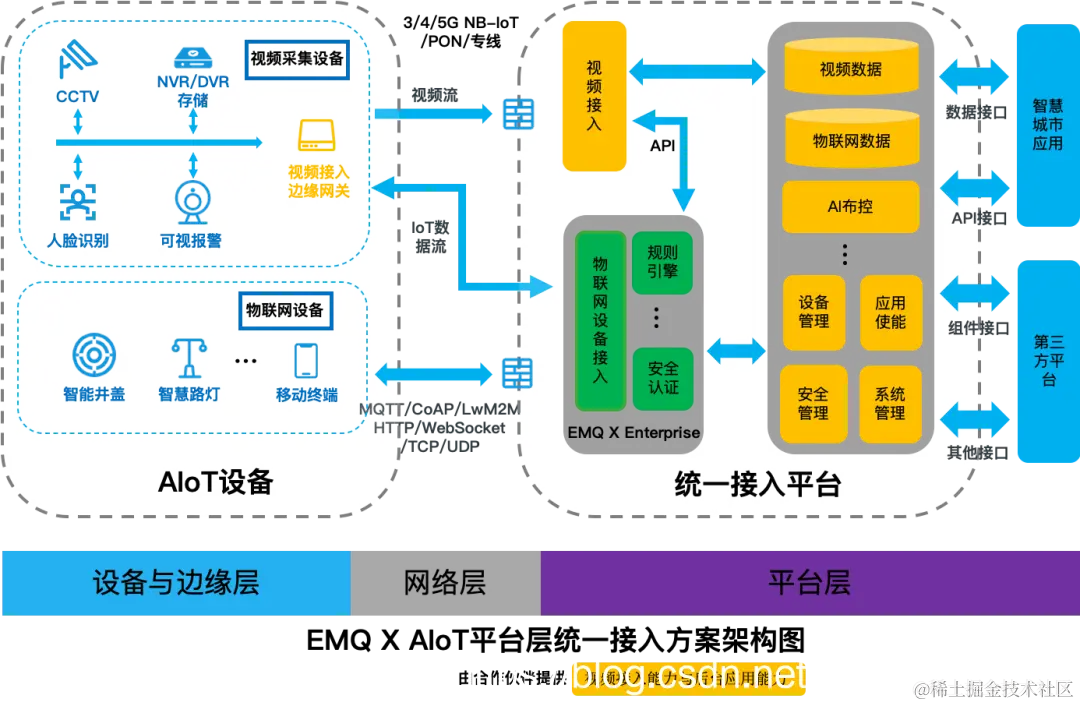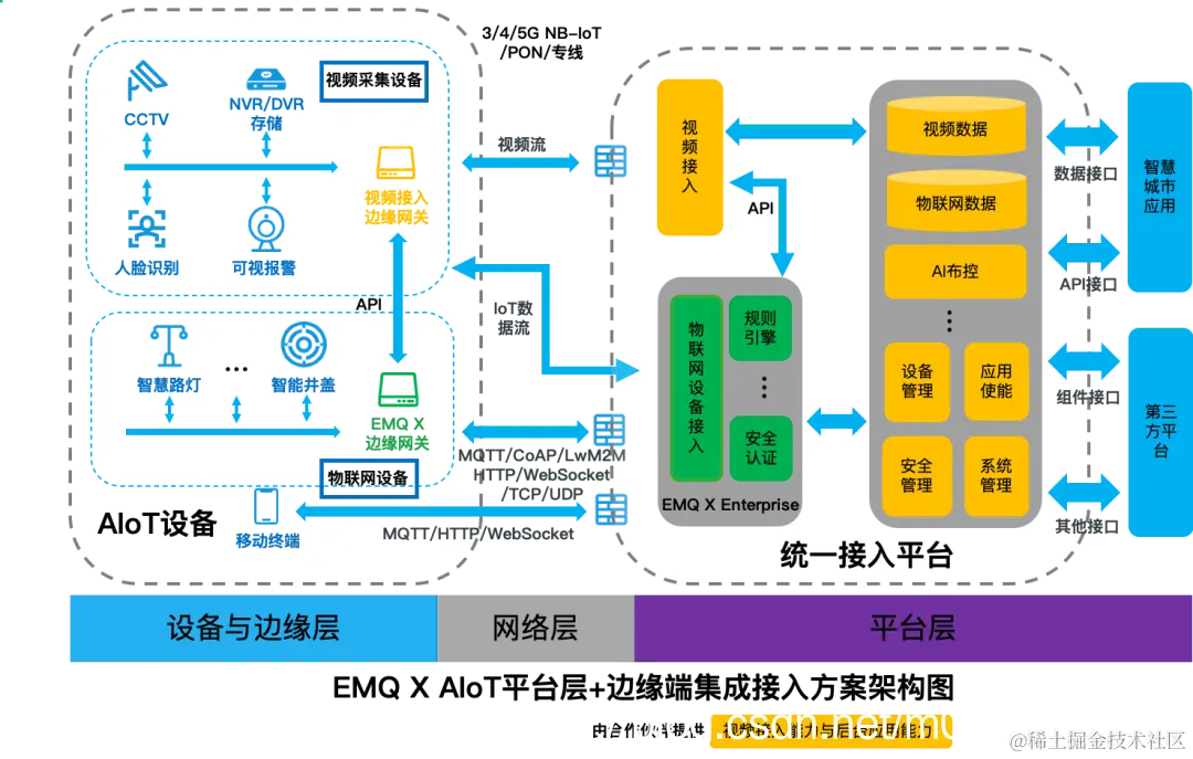 - 统一管理:上层由统一设备管理平台实现物联网设备与视频设备的统一管理(可由第三方集成商设备管理平台、对接客户设备管理平台实现)