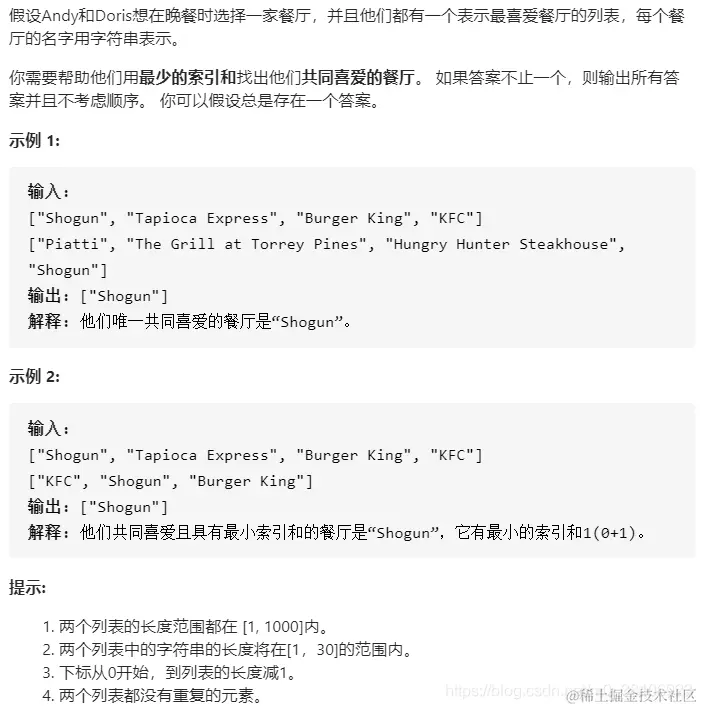 char ** findRestaurant(char ** list1, int list1Size, char ** list2, int list2Size, int* returnSize){