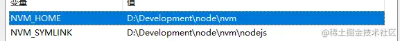 nvm 安装完成以后 会自定多出两个环境变量(系统个个人都有) 如下