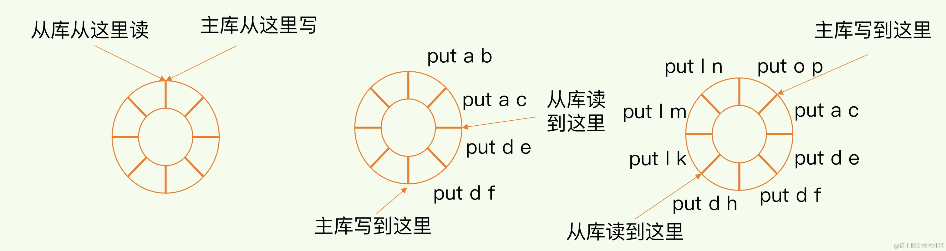需要注意的是如果断连时间较长,repl_backlog_buffer可能被写满,主库继续写入会草成数据被覆盖,导致数据不一致。一般而言,我们会调整 repl_backlog_size,缓冲空间的计算公式是:缓冲空间大小 = 主库写入命令速度 * 操作大小 - 主从库间网络传输命令速度 * 操作大小。