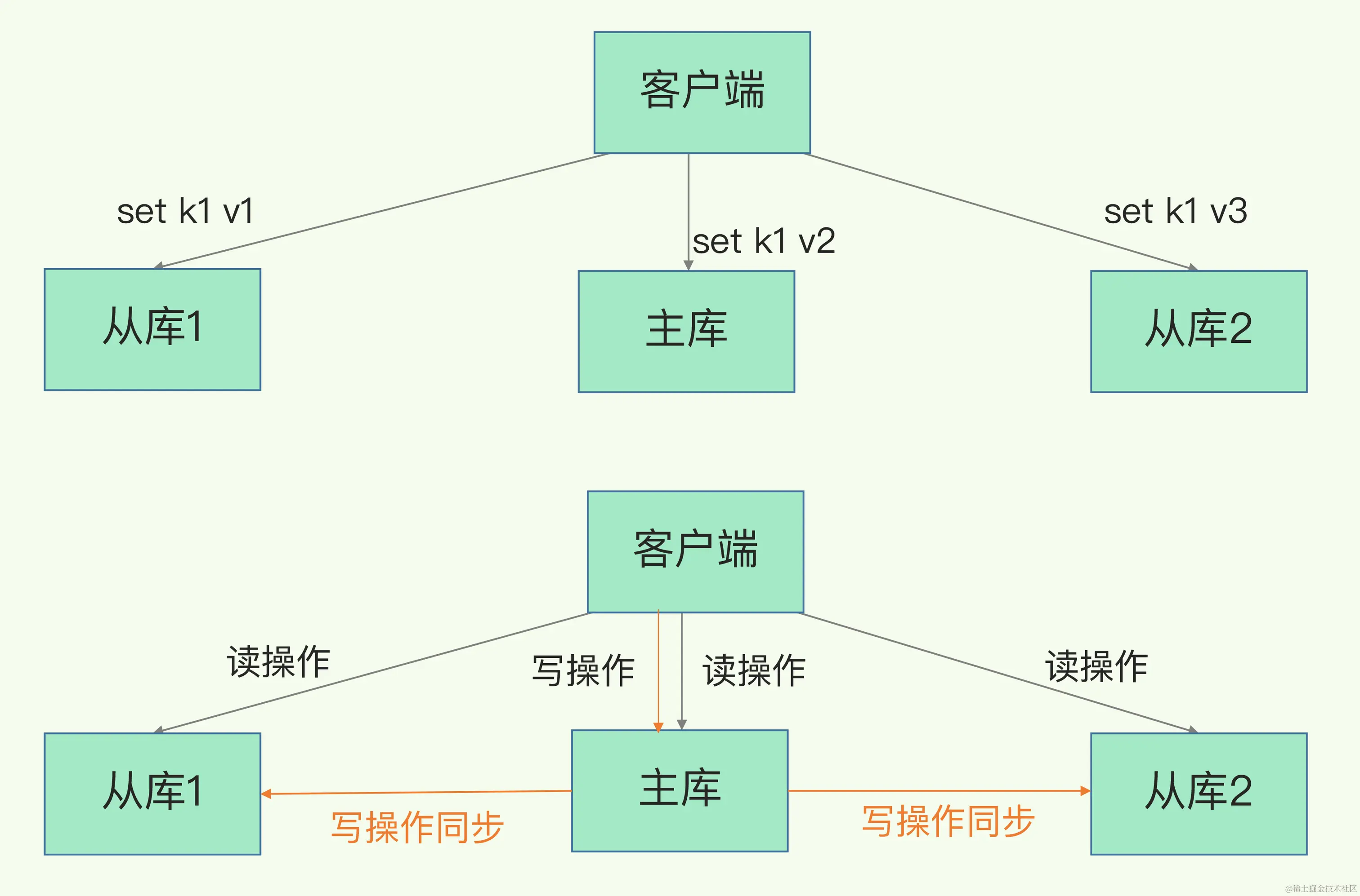 - 读操作 主库从库都接收