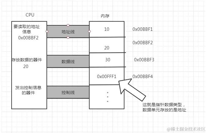 指针:内存里的数据单元存储的是地址的数据类型,就是指针。