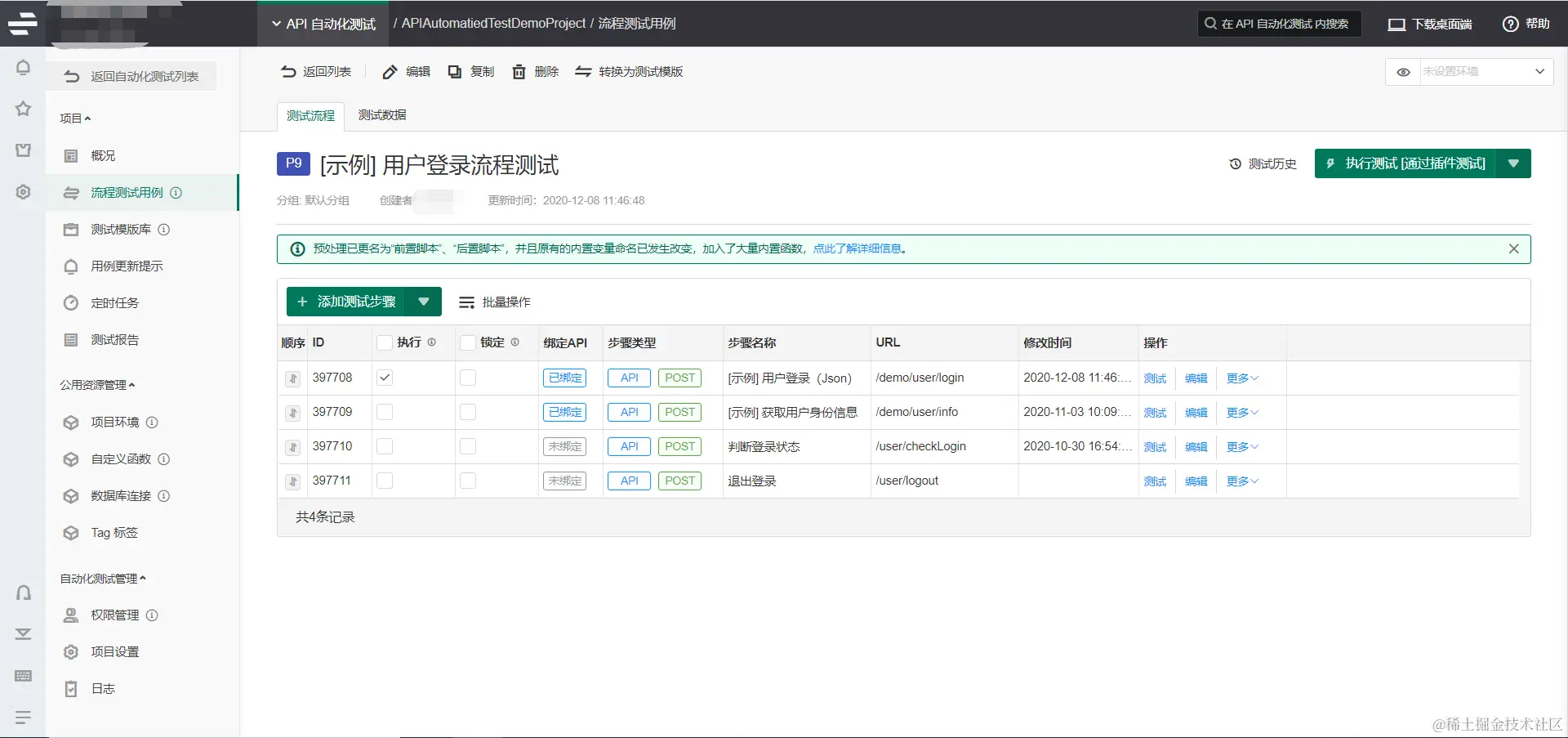 而多个接口则需要形成场景测试用例,用于验证测试流程。