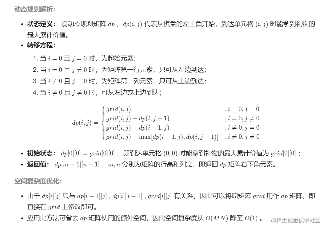 在一个 m*n 的棋盘的每一格都放有一个礼物,每个礼物都有一定的价值(价值大于 0)。你可以从棋盘的左上角开始拿格子里的礼物,并每次向右或者向下移动一格、直到到达棋盘的右下角。给定一个棋盘及其上面的礼物的价值,请计算你最多能拿到多少价值的礼物?