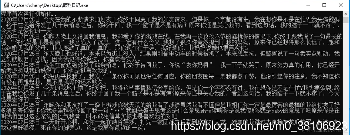 根据作者 @柠檬哦哦哦 的介绍,这是一款Python写的工具,功能简单粗暴,打开工具即可根据当天日期生成舔狗日记,十分快捷便利,让你轻松反超其他舔狗。