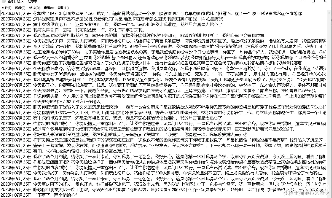 更贴心的是,划词选中生成器中的内容,这款工具会自动为你创建一个新的TXT文档,实时更新刚才生成的所有日记,方便你复制粘贴。