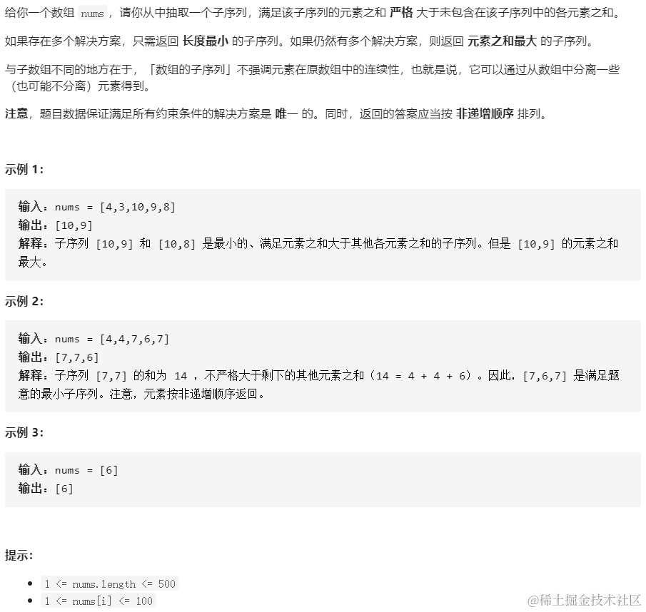 int* minSubsequence(int* nums, int numsSize, int* returnSize)